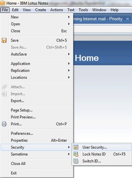 In the very first steps Open Lotus Notes and go to File Menu and then select Security and then User Security.