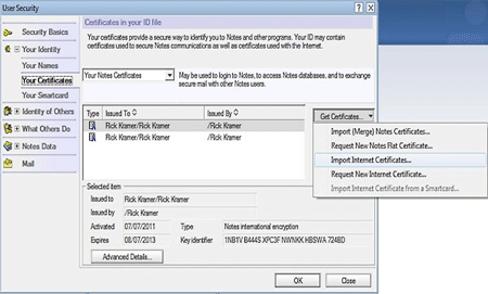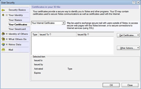Now in the left panel of User Security select Your Identity and then choose Your Certificates to get the Validation.