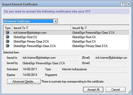 Now a window will open which consist All Internet Certificates you have to click on Accept All button.