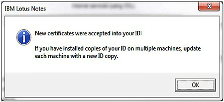 A window of "New Certificates were accepted …" will comes up click on OK button. Now your Security certificates are updated.